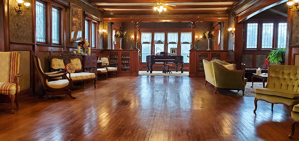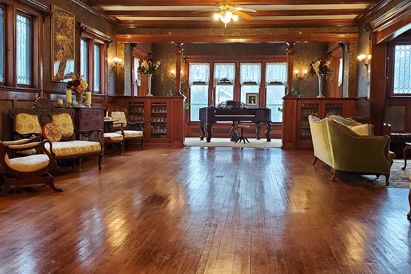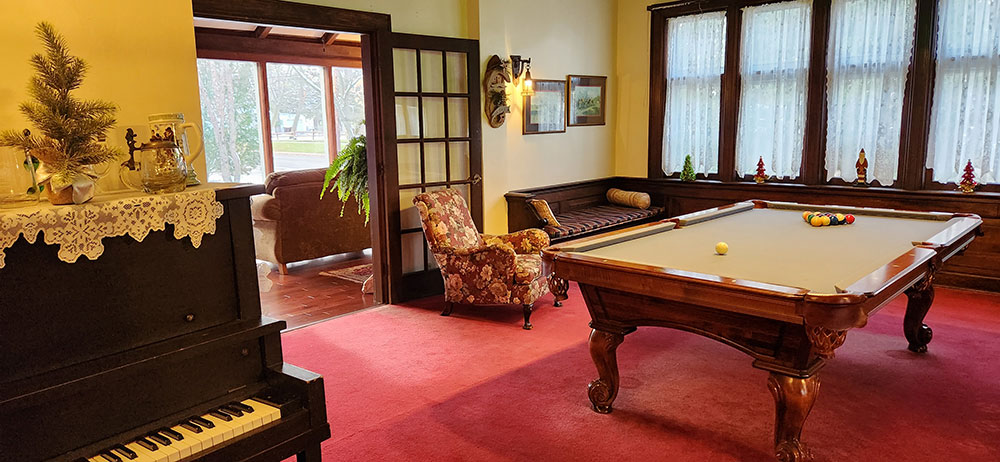 Saravilla offers an excellent location for various group gatherings. With our seven very spacious guestrooms we can provide overnight accommodations for up to twenty-two people. Guests have use of nearly 4,000 sq, ft. of space on the first floor to relax which includes a billiards room, den, library, parlor, and fully equipped kitchenette. Our 1,200 sq. ft Ballroom is available for reservations by contacting our event coordinator at 989-463-4078 option #2 We host small weddings, bridal and baby showers, family reunions, holiday parties, business meetings—call us to discuss your event!